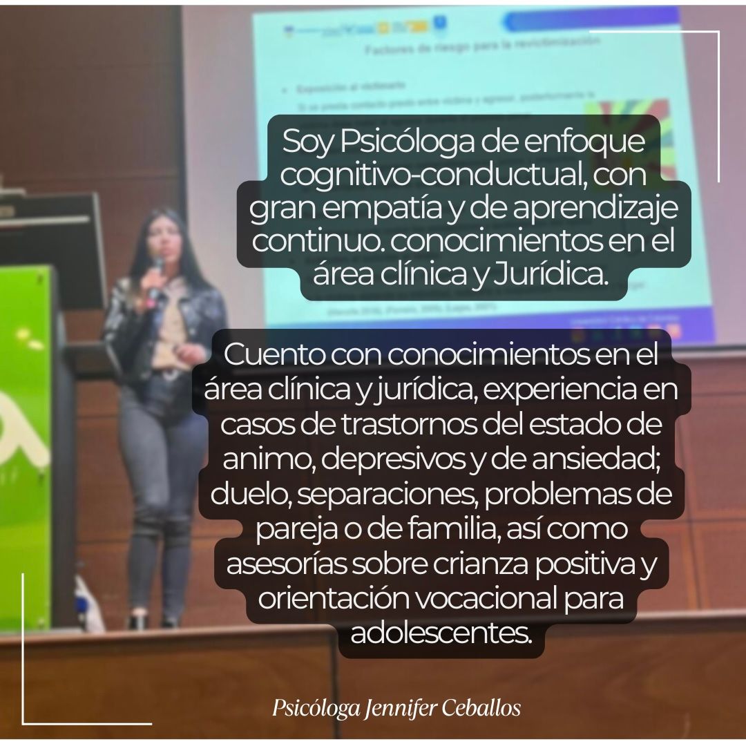Me considero una persona muy empática, responsable, flexible, de aprendizaje continuo y con una gran capacidad de adaptación frente a diferentes poblaciones y objetivos. Además de mi consulta clínica privada, actualmente, me desempeño como psicóloga a cargo del componente psicosocial de jardines infantiles del ICBF pertenecientes a la Asociación Resurgir donde velo por garantizar los derechos de los niños y niñas, además de apoyar y orientar a las familias en las necesidades que manifiesten.